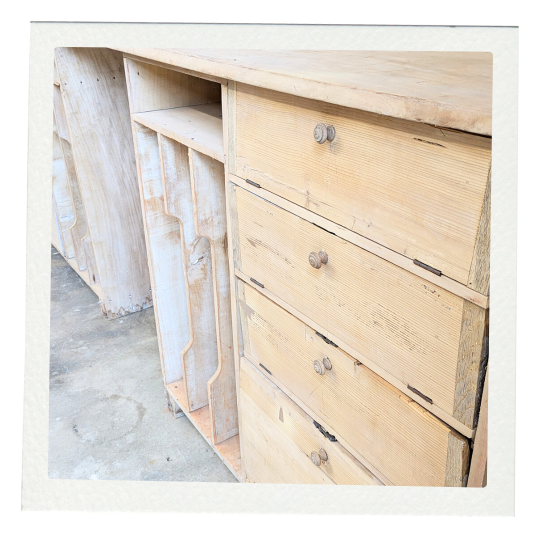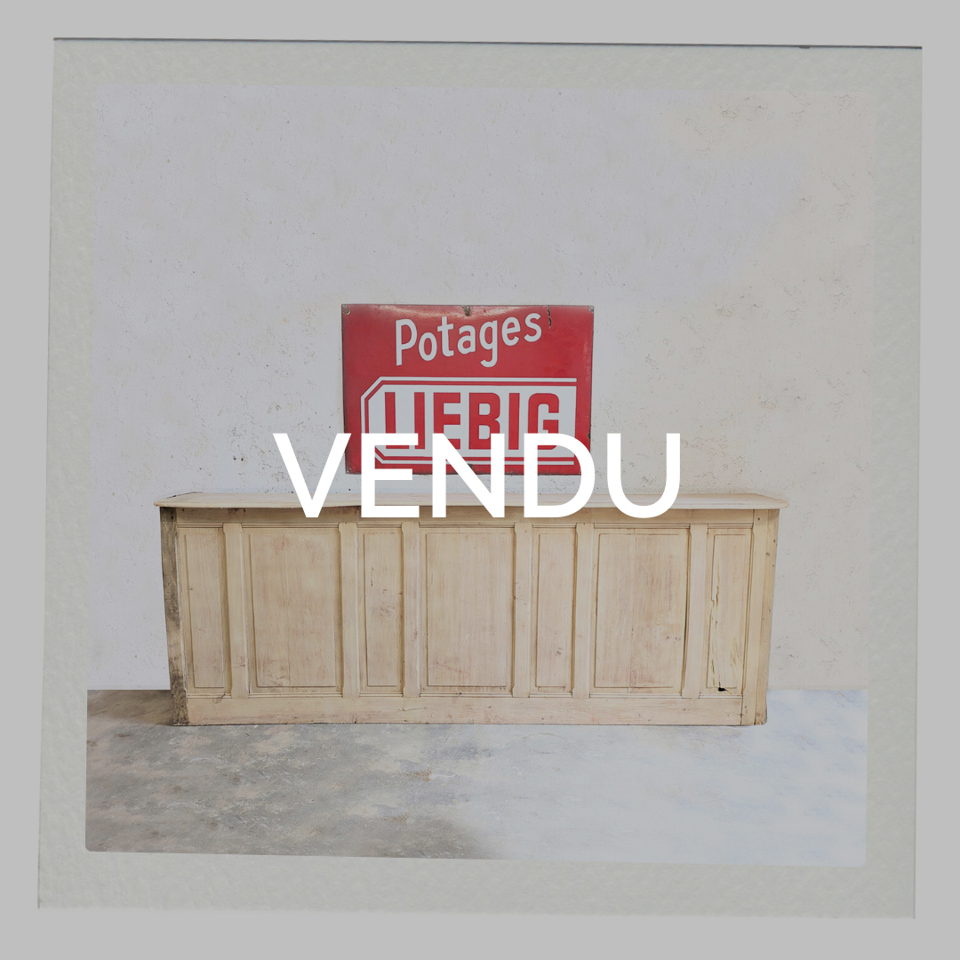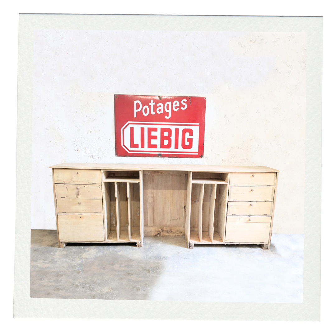 Cet ancien comptoir séduit par son authenticité et son charme patiné par les années. Utilisé autrefois dans un atelier de poterie, il porte les traces de son histoire et de son usage artisanal.